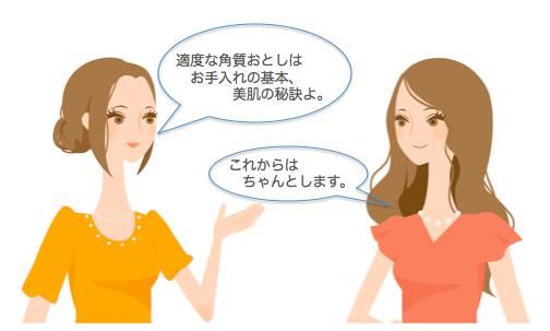 角質をおとす「ピーリング」というと、みなさんイメージするのは透明のジェル。お肌につけてこするとポロポロとまるでお肌の角質がおちたかのような感覚になります。テレビコマーシャルでもそんな感じに宣伝していますね。(汗)でもあれは角質ではなくお化粧品です。あんなに肌の角質がいっぺんに取れたら大変です。その他にはおなじみのスクラブ。これも角質おとしです。