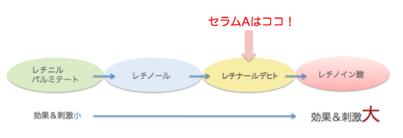 セラムAに配合されているのはレチノイン酸に変化するひとつ手前のレチナールデヒトです。